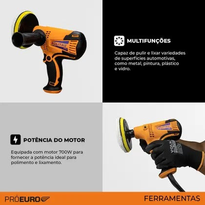 Politriz Multifuncional Pró Euro 700W 220V – 4500 RPM | Disco 125mm Potência, precisão e acabamento profissional A Politriz Multifunções Pró Euro 700W foi desenvolvida para quem busca alto desempenho,...