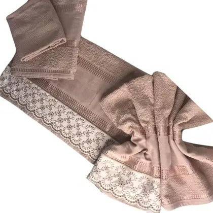 Jogo Banho luxo especial Barrado Bordado Richilieu 5 Peças - INGRID BORDADOS