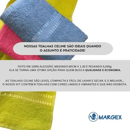 Kit 8 Toalhas Banho Algodão Toque Suave leve - Margex